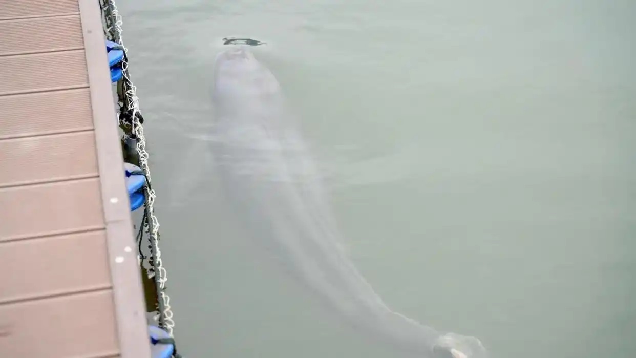 3月初,江豚湾仍处枯水期,江豚多聚会在深水区,想一睹其芳容并非易事。但在君山区江豚科研挽救基地的野化网箱里,记者见到了一头正在康复的江豚——它客岁5月在益阳沅江被救起,经长沙海底世界进击救治后,转运至这里进行野化训诫,待评估及格后将重返长江怀抱。